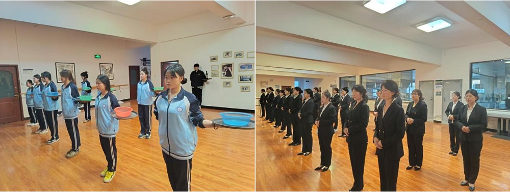 随后全体学生进行托盘、走姿、微笑等酒店服务技能的现场展示,全方位呈现特色晚自习教学效果,学生们用温暖而真诚的笑容传递出餐饮服务行业“以客为尊”的核心理念,学生们的展示得了在场师生们的肯定。