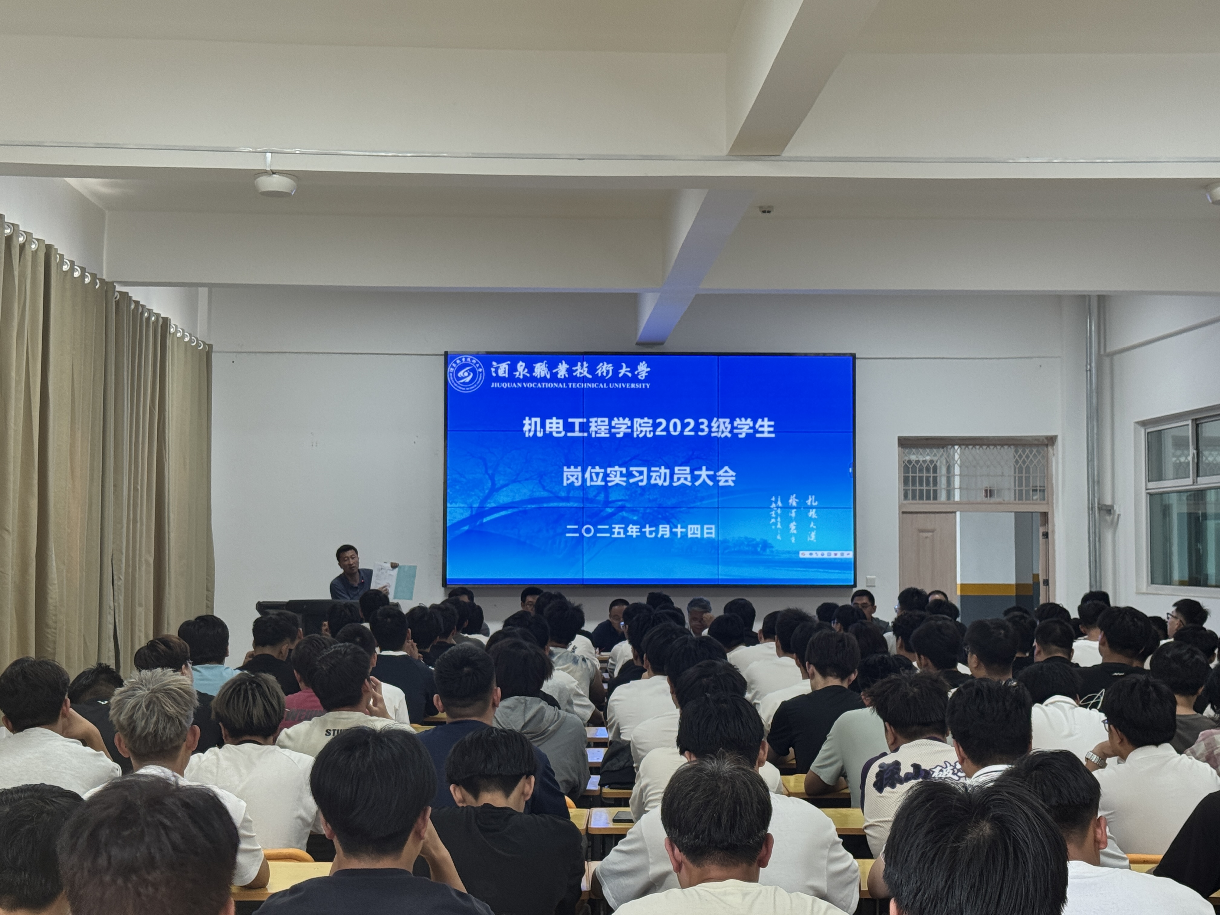 院系动态 > 正文为加强学生实习安全,确保2023级学生岗位实习有序开展,7月14日,机电工程学院分场次召开2025年学生岗位实习安全动员大会。学院党支部副书记李建春、副院长赵吉虎、副院长刘明及相关专业班主任及509名实习学生参会。