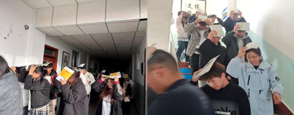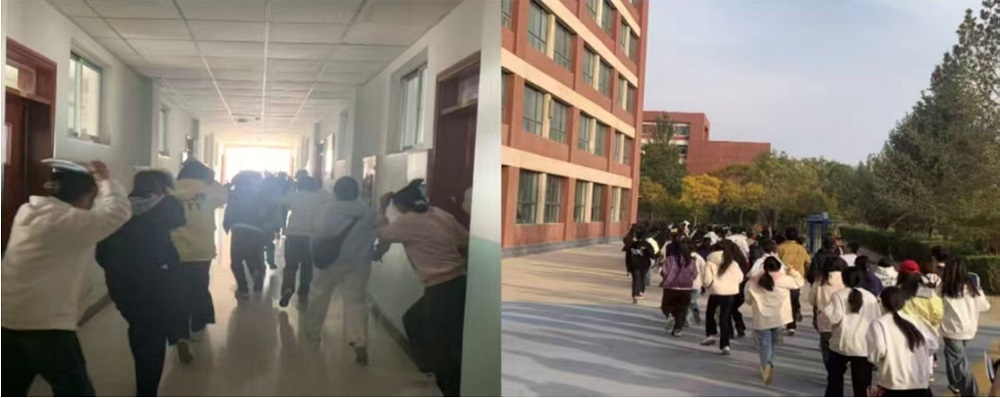 下午5:00,随着第一声急促的哨声响起,演练正式开始。楼内各教室学生迅速做出反应,依照前期各班级组织学习的应急避险知识技能、演练纪律与安全注意事项,立即就近躲避到课桌下方等安全区域,双手护头,完成地震发生时的标准避险动作。后在任课教师、班主任及安全员的引导下,按照预定路线迅速、有序地从教学楼撤离至指定安全区域。整个过程快速有序,师生配合默契,展现出良好的应急反应能力。