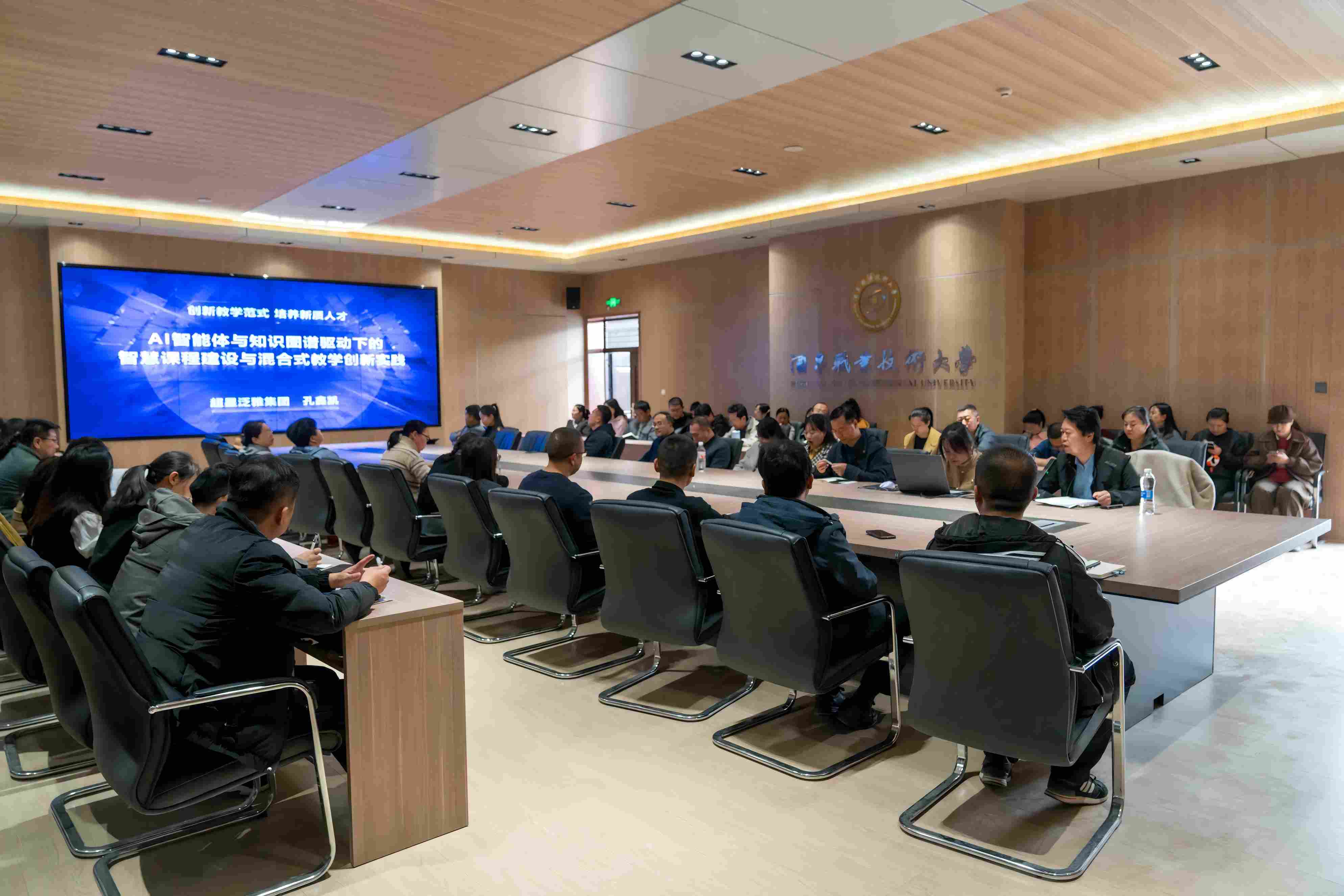 讲座中,孔鑫凯结合甘肃省智慧课程建设标准与我校智慧课程建设实际,在技术内核解读环节系统阐释了AI智能体与知识图谱的协同机制;针对职教课程特色,重点解析了“岗课赛证”一体化课程的数智化改造方案;案例分享环节中,精选多所职教院校实践范本,针对智慧课程申报痛点,结合“金课”评审经验,梳理出课程思政融入、数据支撑材料准备等核心问题的解决方案,极具实操价值。