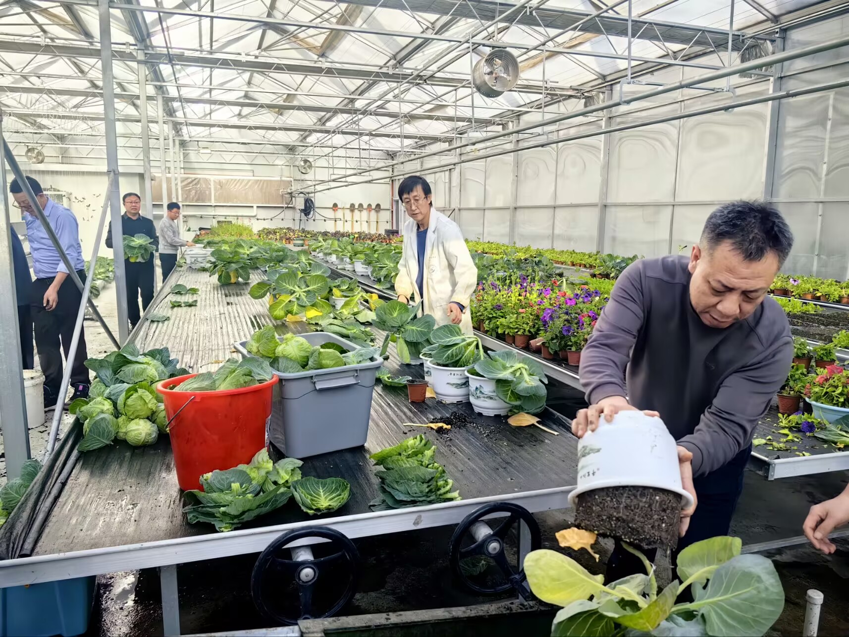 活动现场,全体人员分工明确、配合默契;在基质搅拌区域,老师们严格按照育苗技术规范,精准配比基质成分,通过人工搅拌,确保基质疏松透气、肥力均匀,为幼苗生长筑牢基础;在育苗操作环节,大家小心翼翼地将搅拌好的基质装入育苗盘,细致点播种子、覆盖薄土、浇足定根水,每一个步骤都力求规范到位,充分展现了生物工程学院教师严谨细致的工作态度和扎实过硬的专业技能。