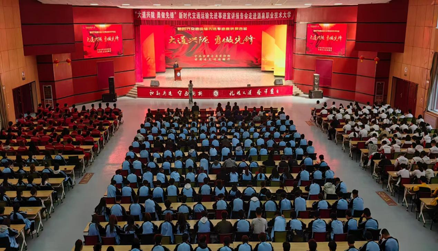 2025年4月16日,“大道兴陇 勇做先锋”新时代交通运输先进事迹宣讲报告会在酒泉职业技术大学胡杨文化中心举行。本次活动由中共甘肃省委宣传部、甘肃省交通运输厅联合主办,酒泉职业技术大学承办,甘肃省交通文化宣传教育中心副主任石艳东、酒泉市交通运输局党组成员、副局长赵生福、酒泉公路事业发展中心党委专职副书记钱付忠、学校党委委员、副校长施荣与500余名师生代表参与本次活动。