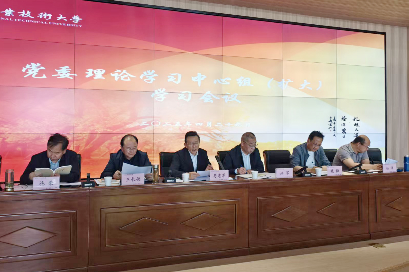 2025年4月29日,学校召开党委理论学习中心组(扩大)学习会议。党委书记易志军主持会议。党委理论学习中心组(扩大)全体成员参加会议。